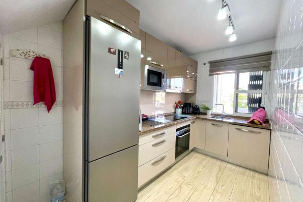 The house consists of an entrance hall, separate kitchen, living room with access to a large terrace, 3 bedrooms with fitted wardrobes and 2 bathrooms. Superb orientation, air conditioning, fitted wardrobes.