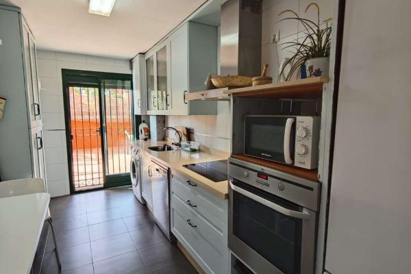 La cuisine indépendante, spacieuse et bien distribuée, vous permet de profiter d’un environnement pratique et confortable, avec suffisamment d’espace pour un bureau.