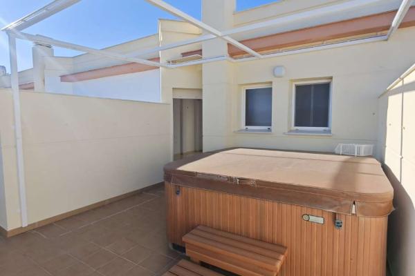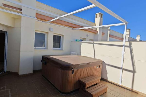 La maison dispose d’une cuisine séparée et meublée ; quatre chambres ; deux d’entre elles sont situées au rez-de-chaussée avec une salle de bain, et les deux autres sont situées à l’étage supérieur avec une autre salle de bain. Il dispose également de trois terrasses de 45 m2 pour profiter des journées chaudes. À vendre.