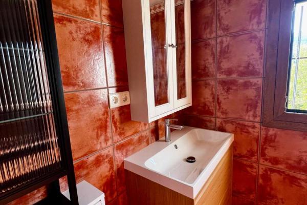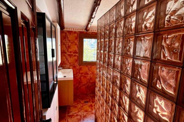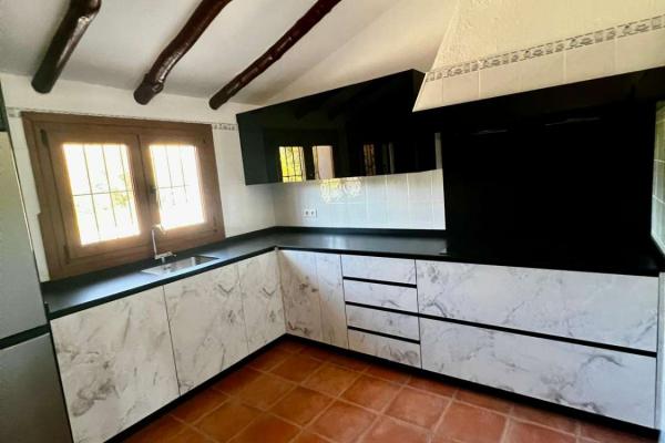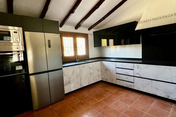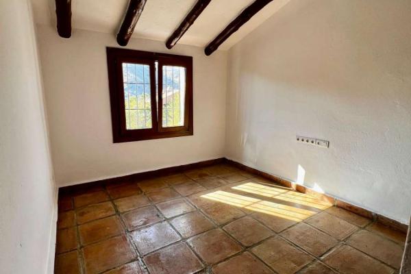 Fastigheten är fördelad i ett vardagsrum och matsal, öppen spis, kök, två badrum, tre sovrum, hall, två täckta verandor och en tomt med en nyttoareal på 123,08 m². Privat pool med bergsutsikt.
